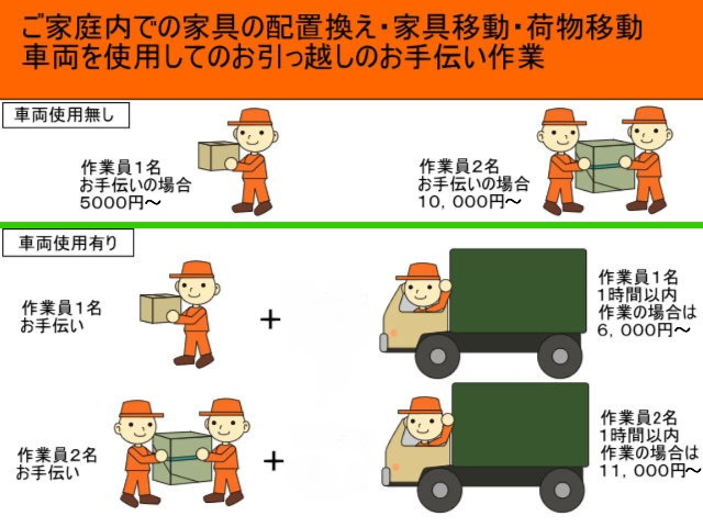 ※上記料金目安は、軽トラック使用にて同一市内移動での基本料金目安となっております。